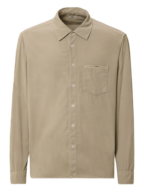 light grey chest pocket button fastening long sleeves buttoned cuffs corduroy texture