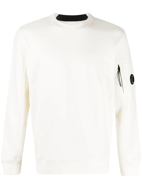 white cotton ribbed detailing signature Lens detail long sleeves round neck straight hem C.P. Company suggests removing any detachable accessories before washing.