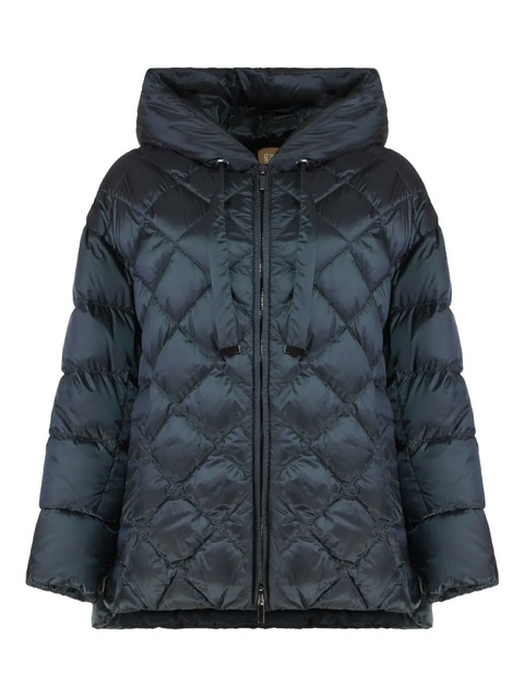 dark blue diamond quilting hood zip fastening side pockets