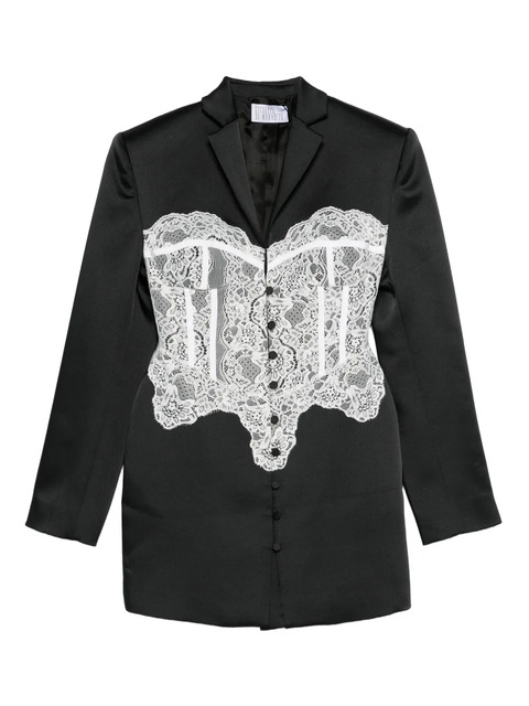 black lace panel button fastening v-neck long sleeves peak lapels