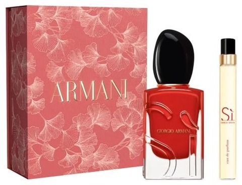 Launch year: 2013. Fragrance Family: Chypre Fruity. Top notes: Sicilian bergamot, Mandarin, Blackcurrant liqueur. Heart notes: Rose de Mai, Neroli, Egyptian jasmine, Freesia. Base notes: Patchouli, Woods, Amber, Orcanox, Vanilla. Design house: Giorgio Armani. Design house category: fashion. Design house country: Italy. Scent name: Si. Gender: Ladies. Category: Fragrance. SubType: Gift Set. Barcode: 3614274459135. Giorgio Armani Si (W) Set Edp 50Ml + Edp 10Ml Travel Spray. Giorgio Armani Ladies Si Gift Set Fragrances 3614274459135. <br/><br/> This item is only valid for shipment in the Contiguous United States & Canada.