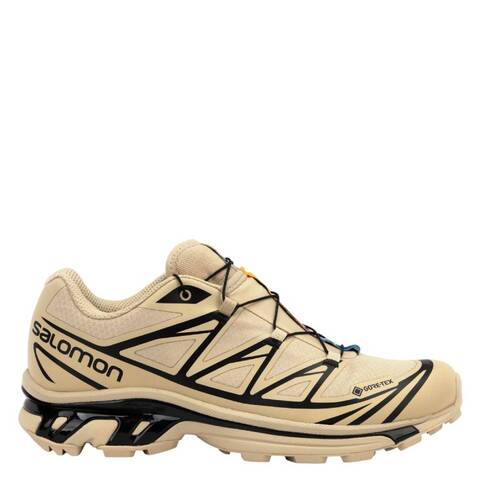 Salomon Ladies Sneakers. SKU: L47445500. Color: Safari/Safari/Black. Salomon XT-6 Gore-Tex Safari Sneakers. The XT-6 GORE-TEX sneakers feature a cutting-edge ePE membrane, PFC-free materials, and an anti-debris mesh upper. Designed for long-lasting comfort and stability, they offer durable cushioning to support you through any distance. Material: Synthetic & textile upper. <br/><br/><b>Please visit the brand website for sizing information.</b>