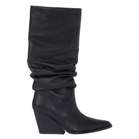 Kenzo Ladies Boots. SKU: FB62BT042L51-99. Color: Black. Kenzo Black Billow Heel High-Top Boots. Crafted in smooth black leather with a modern slouchy shaft that exudes effortless edge. Designed with a pointed toe and an angular, sculpted wedge heel, they blend Western-inspired flair with contemporary sophistication. 100% Leather. Made in Spain. <br/><br/><b>Please visit the brand website for sizing information.</b>