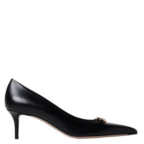 Valentino Ladies Heels. SKU: 5W2S0JE1EEY0NO. Color: Nero. Valentino VLogo Pointed-Toe Calfskin Pumps. Made from leather, this pumps feature a slip-on style, a pointed-toe, stiletto heel, gold-tone VLogo hardware, a leather sole and leather lining. 100% Leather. Made in Italy. <br/><br/><b>Please visit the brand website for sizing information.</b>
