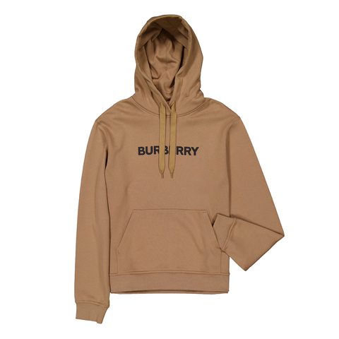 Burberry Ladies Tops. Fashion category: Hoodies & Sweatshirts. SKU: 8084756. Color: Camel. Burberry Womens Logo Detailed Drawstring Hoodie. An organic cotton hoodie made from soft jersey, featuring an applique logo on the front. Designed with a drawstring hood, long sleeves, ribbed cuffs and hem, a front pouch pocket, and a straight hem. Finished with a cozy French terry lining for added comfort. Organic Cotton 100%