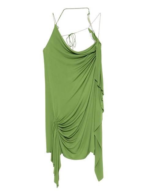 apple green spaghetti straps ruched detailing asymmetric hem draped detailing