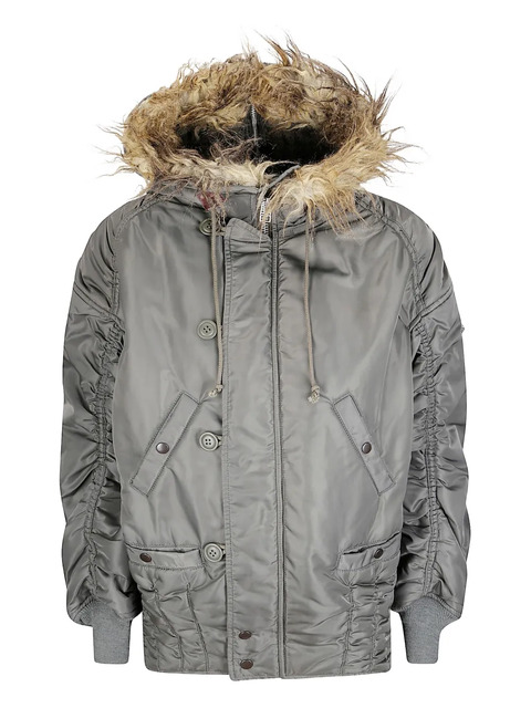 sage green faux fur trim hood zip fastening button fastening sleeve pocket