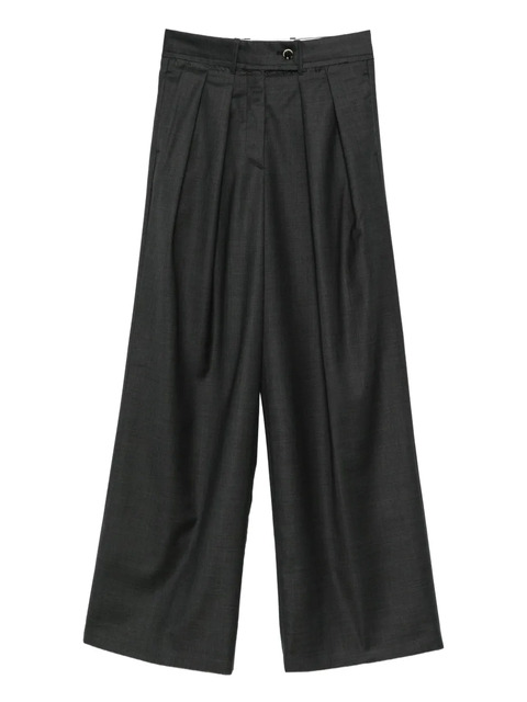 dark grey belt loops button fastening wide leg pleated front rear welt pocket