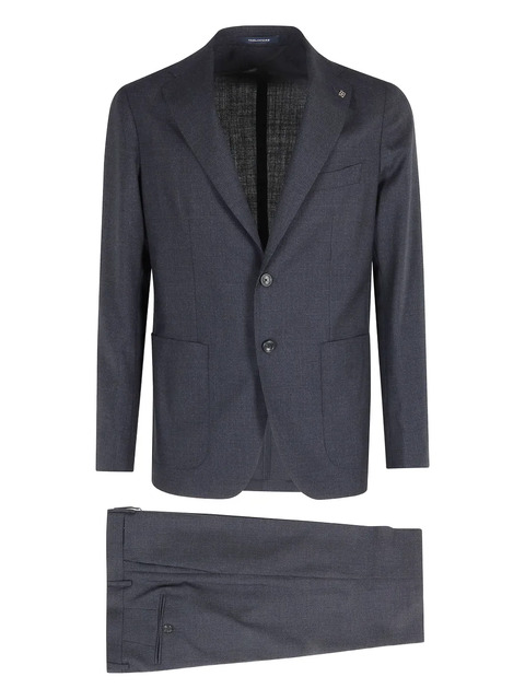 blue notched lapel two-piece button fastening flap pockets buttoned cuffs