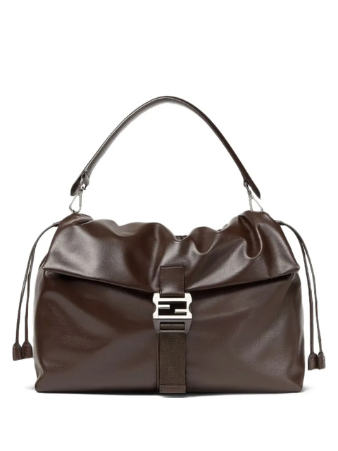 dark brown leather FF-buckle fastening adjustable detachable shoulder strap removable handle drawstring closure