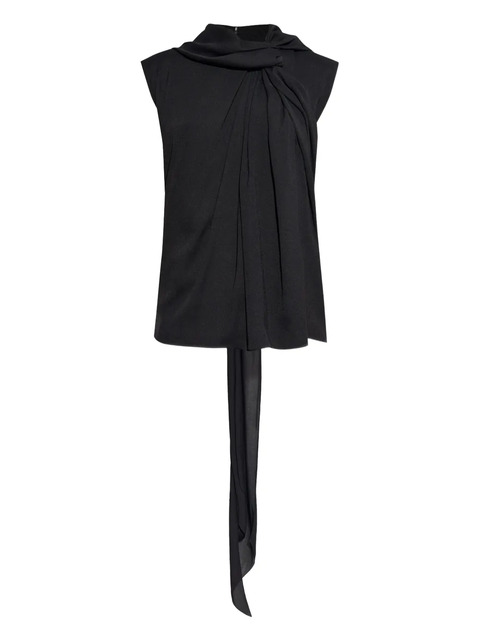 black draped detail tie detail sleeveless crew neck back zip fastening