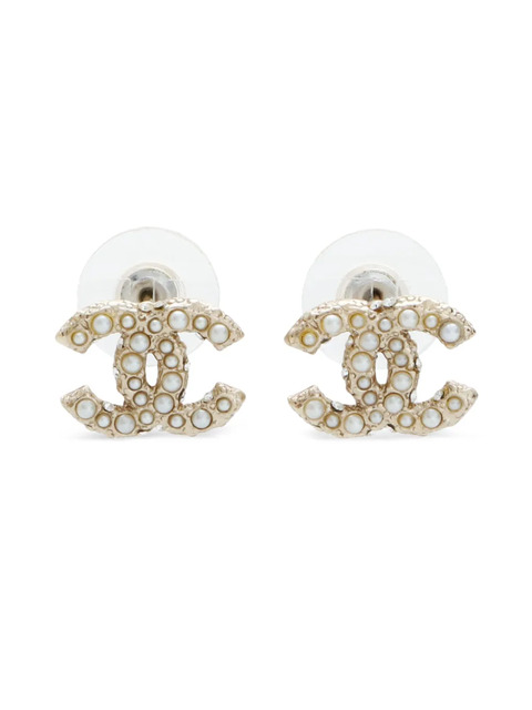 gold-tone 2014 signature interlocking CC logo pearl embellishment post-back fastening for pierced ears metals and alloys Normal everyday use and external agents may reduce the lustre of gemstones and gold surfaces. To maintain, use specific, non-abrasive products specially meant for cleaning jewellery. These earrings come as a pair. Condition: GOOD. This previously owned and used item is in good condition with minimal signs of use. This may include fading of material or plating and scratches.