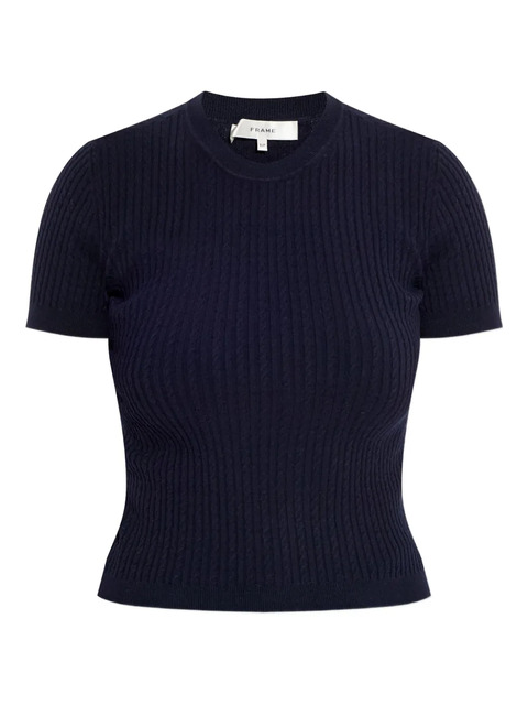 navy blue short sleeves crew neck cable knit