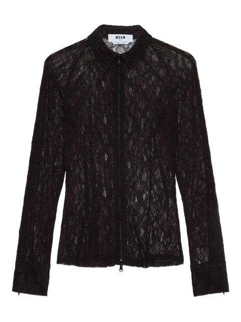 MSGM floral-lace zip-up shirt - 31490465 (LPN375290)