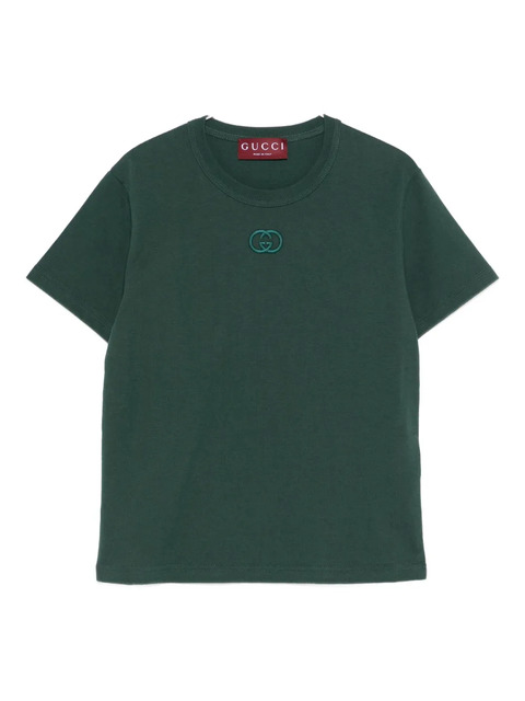 dark green embroidered interlocking G logo round neck short sleeves straight hem tonal stitching