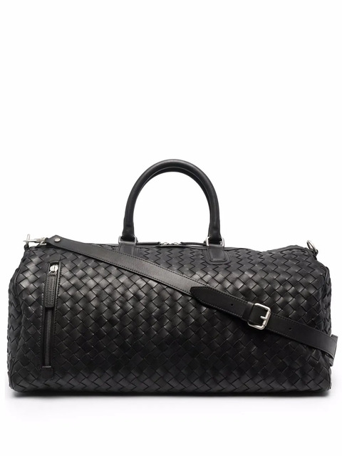 jet-black calf leather silver-tone hardware interwoven design front zip-fastening pocket two rounded top handles top zip fastening internal logo patch adjustable detachable shoulder strap internal zip pocket