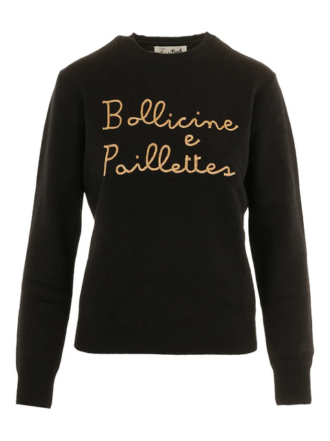 black embroidered Bollicine E Pailettes crew neck long sleeves ribbed hem and cuffs