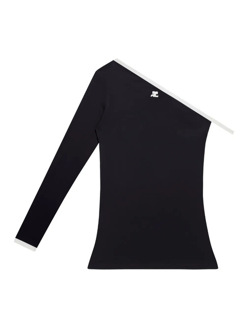 black/white cotton soft jersey asymmetric neck embroidered logo at the chest single long sleeve straight hem