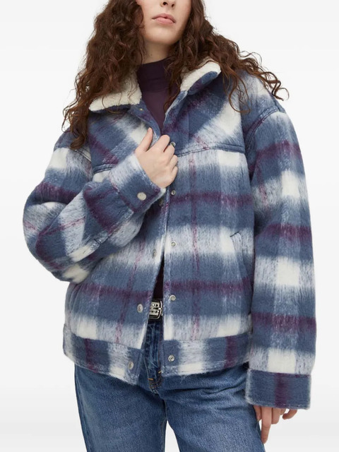 blue check pattern sherpa collar button fastening buttoned cuffs buttoned chest pockets