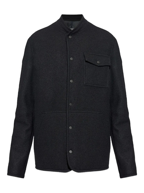 black wool snap button-fastening chest pocket round neck long sleeves leather logo patch
