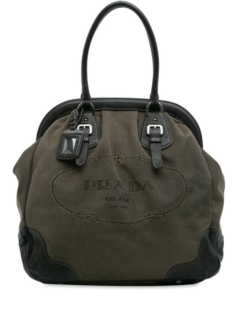 Prada Pre-Owned 2013-2025 Leather Trimmed Canvas Canapa Logo Frame tote bag - 32460770 (LPN375738)
