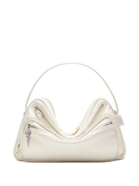 cream white calf leather triple zip fastening top handle adjustable detachable shoulder strap