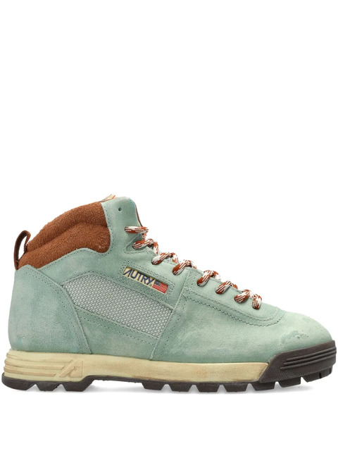 light green high-top panelled design lace-up fastening lug sole padded collar