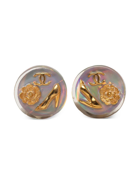 CHANEL Pre-Owned 1997 Gold Plated Resin CC Camellia Button Clip On Earrings costume earrings - 32461285 (LPN376018)