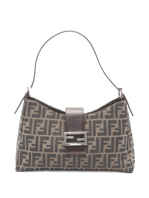 2010s brown FF pattern leather trim top handle internal zip pocket silver-tone hardware Condition: GOOD. This previously owned and used item is in good condition with minimal signs of use. This may include fading of material or plating and scratches.
