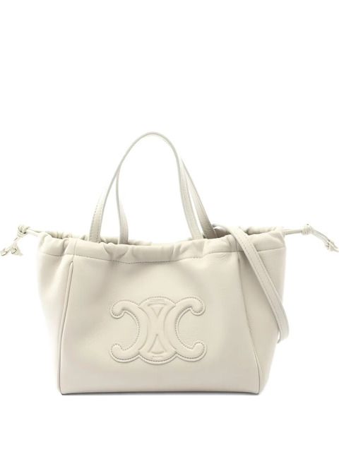 2010s light beige leather cuir triomphe motif drawstring fastening top handle 2 way