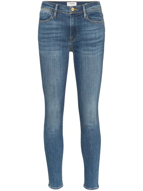 These blue FRAME Le High skinny jeans are made with a standard trouser zip and button fastening and feature a mid-rise waist with belt loops, the classic five jean pockets style, a skinny silhuouette and cropped length. The French form of the name Jean can be translated to mean ‘God is gracious’. We bet she is, especially seeing as she gets to see us in these FRAME denim trousers every day.