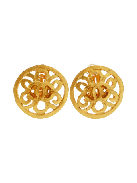 1995 gold-tone signature interlocking CC logo clip-on fastening round shape openwork design Normal everyday use and external agents may reduce the lustre of gemstones and gold surfaces. To maintain, use specific, non-abrasive products specially meant for cleaning jewellery. These earrings come as a pair. Condition: GOOD. This previously owned and used item is in good condition with minimal signs of use. This may include fading of material or plating and scratches.