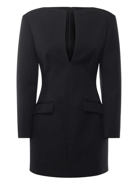 black plunge neck long sleeves square neck flap pockets rear zip fastening