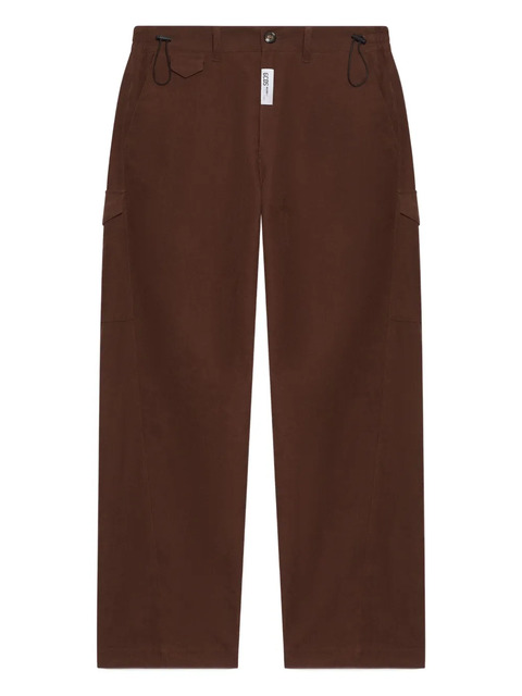 brown cotton side cargo pocket rear flap pockets drawstring detail button fastening