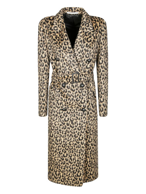 beige and black animal print double-breasted belt button fastening notched lapels