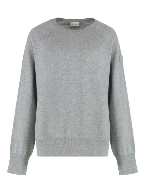 grey crew neck logo patch long sleeves ribbed hem ribbed cuffs