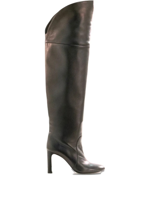 black 85mm heel over-the-knee pull-on style curved topline tonal stitching