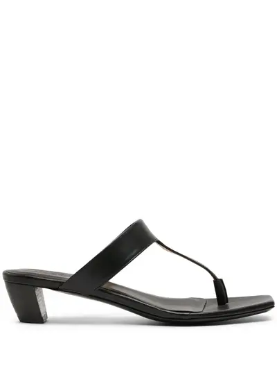 black low heel thong strap leather sole