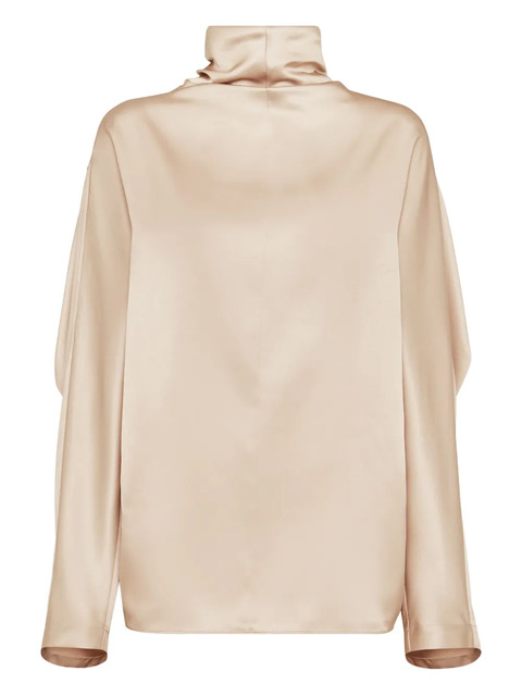 taupe smoke silk satin mock neck long sleeves rear zip fastening tonal stitching