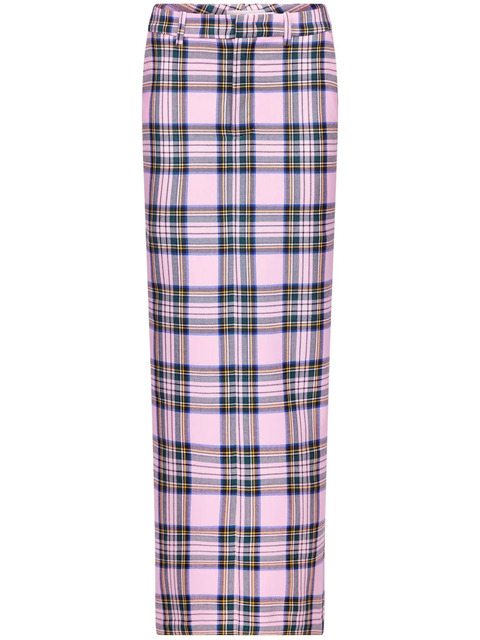 rose pink/multicolour plaid check pattern rear slit high-waisted concealed front fastening belt loops rear button-fastening jetted pocket straight leg ankle-length straight hem