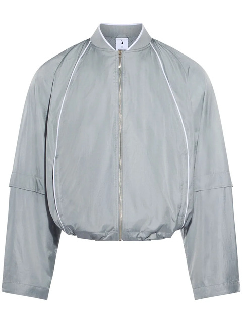 ash grey front zip fastening ribbed band collar torchon piping detail branded zip puller signature Swoosh logo detail long sleeves logo print to the rear elasticated hem