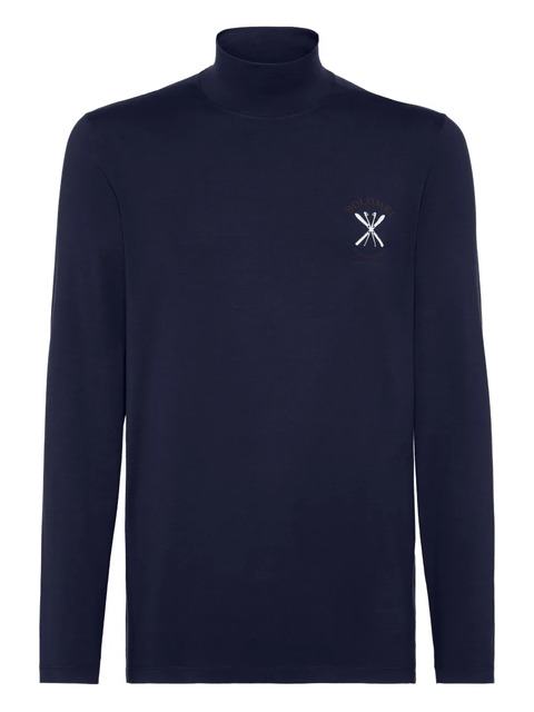 navy blue turtleneck neckline long sleeves print detail silk composition