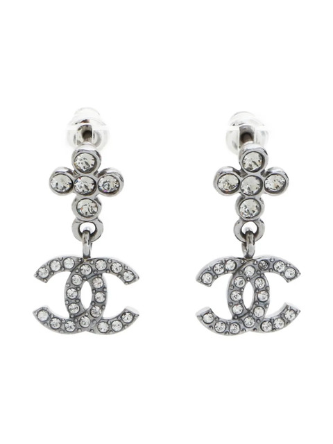 2023 silver-tone signature interlocking CC logo stud style flower detail post-back fastening for pierced ears Normal everyday use and external agents may reduce the lustre of gemstones and gold surfaces. To maintain, use specific, non-abrasive products specially meant for cleaning jewellery. These earrings come as a pair. Condition: EXCELLENT. This previously owned item is in near-perfect condition with no signs of damage or use.