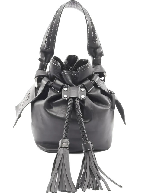 2000s black leather drawstring fastening tassel detail top handle logo detail