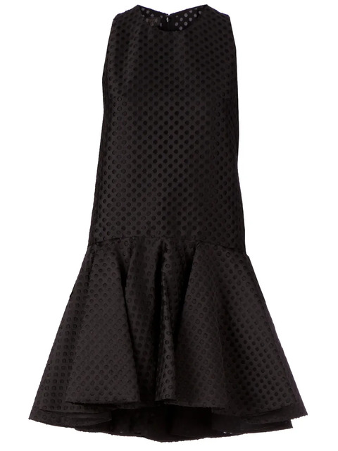 Black silk blend perforated dress from Giambattista Valli featuring a round neck, a sleeveless design, a perforated detail, a flared skirt and a rear zip fastening.