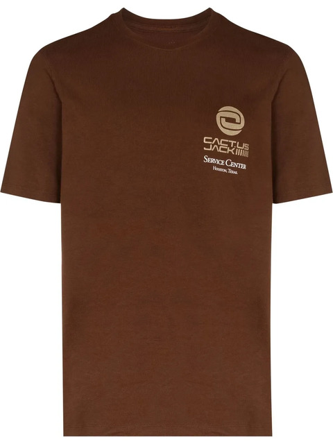 brown cotton graphic print at the chest graphic print to the rear round neck short sleeves straight hem