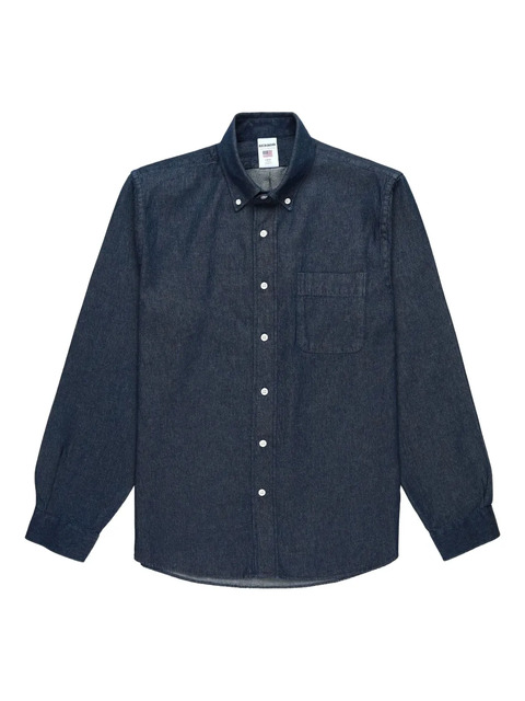navy blue chest pocket button fastening long sleeves buttoned cuffs classic collar