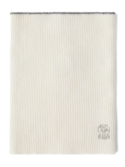 Brunello Cucinelli ribbed-knit logo-embroidered scarf - 31596029 (LPN377025)