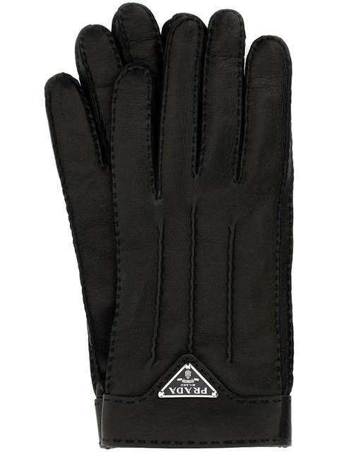 Prada enamel-logo leather gloves - 13322763 (LPN377048)