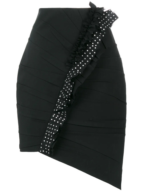 Now that we’re thinking about it, this minii skirt seems like the perfect first-date number. If you're not enjoying it, just dot your i's and leave. Saint Laurent will be right there with you. Featuring an asymmetric style, a ruffle trimming, a ruched detail, a high waist, a short length and polka-dot detailing.